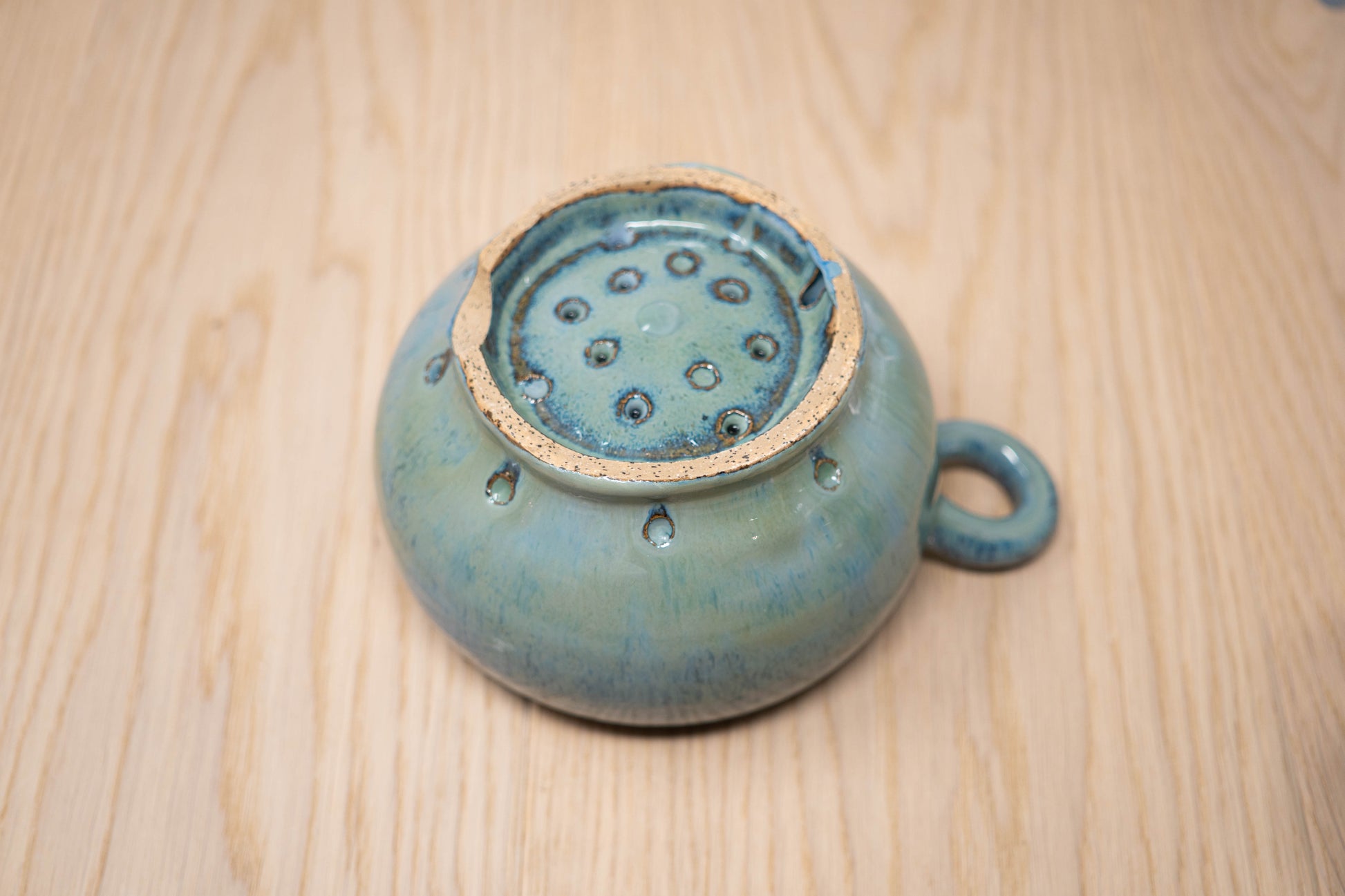 These berry bowls are perfect mini colanders for draining berries or other small quantities. It even works as a plant pot! They're all imperfect, with some of their holes having been filled in when the glaze went runny in the kiln and may have got stuck at the bottom as well which is why they're all discounted!