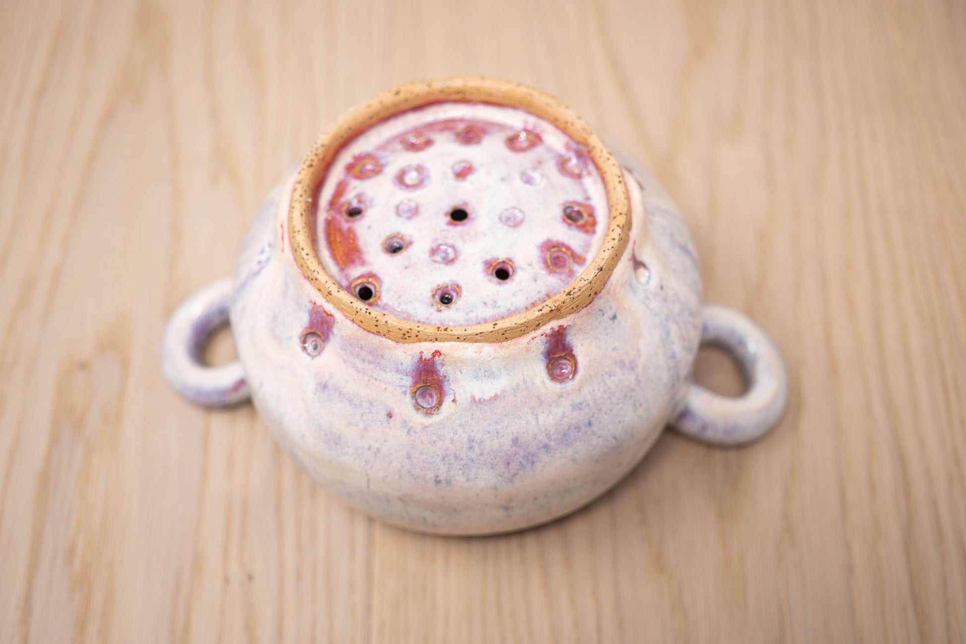 These berry bowls are perfect mini colanders for draining berries or other small quantities. It even works as a plant pot! They're all imperfect, with some of their holes having been filled in when the glaze went runny in the kiln and may have got stuck at the bottom as well which is why they're all discounted!