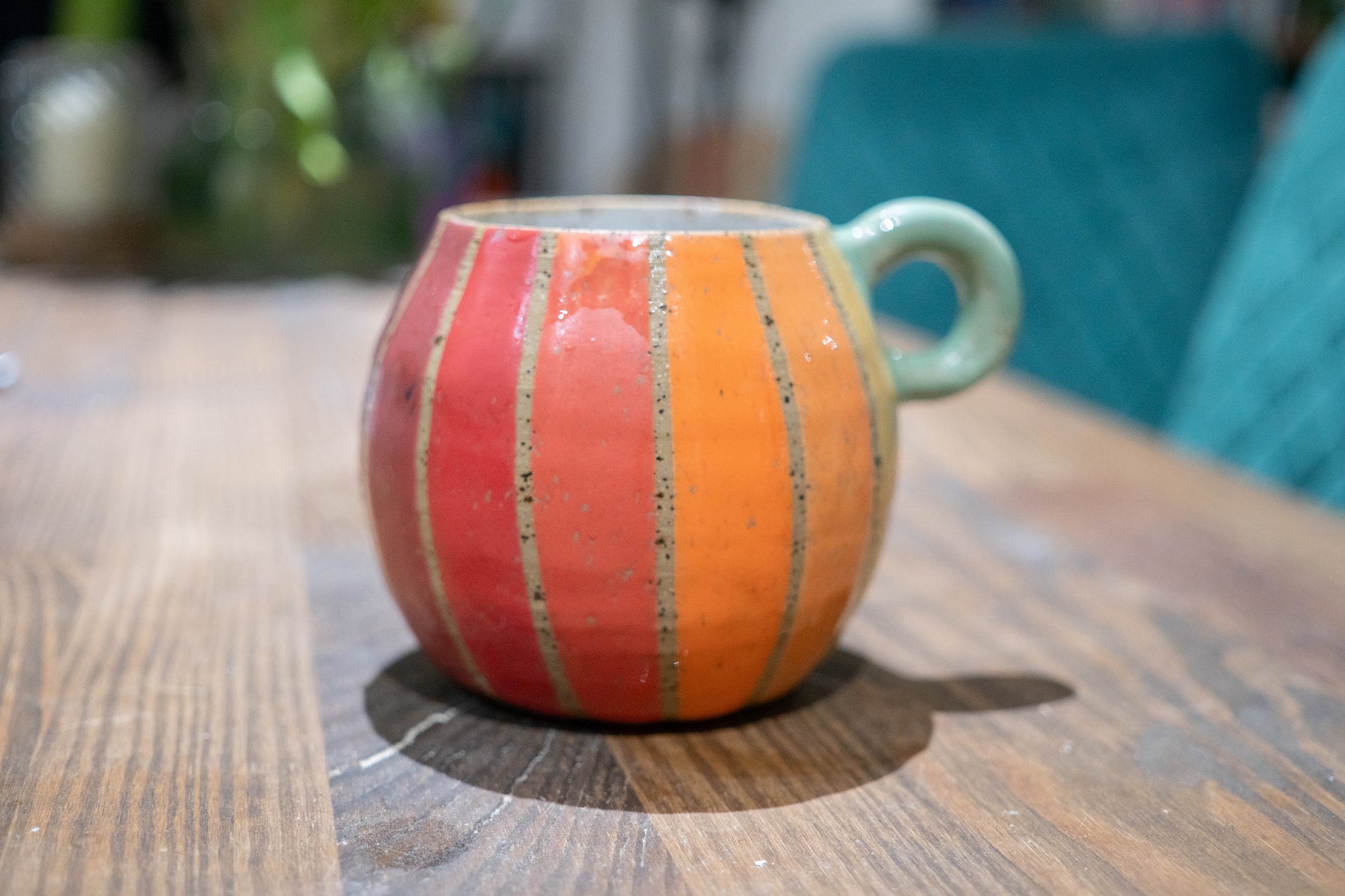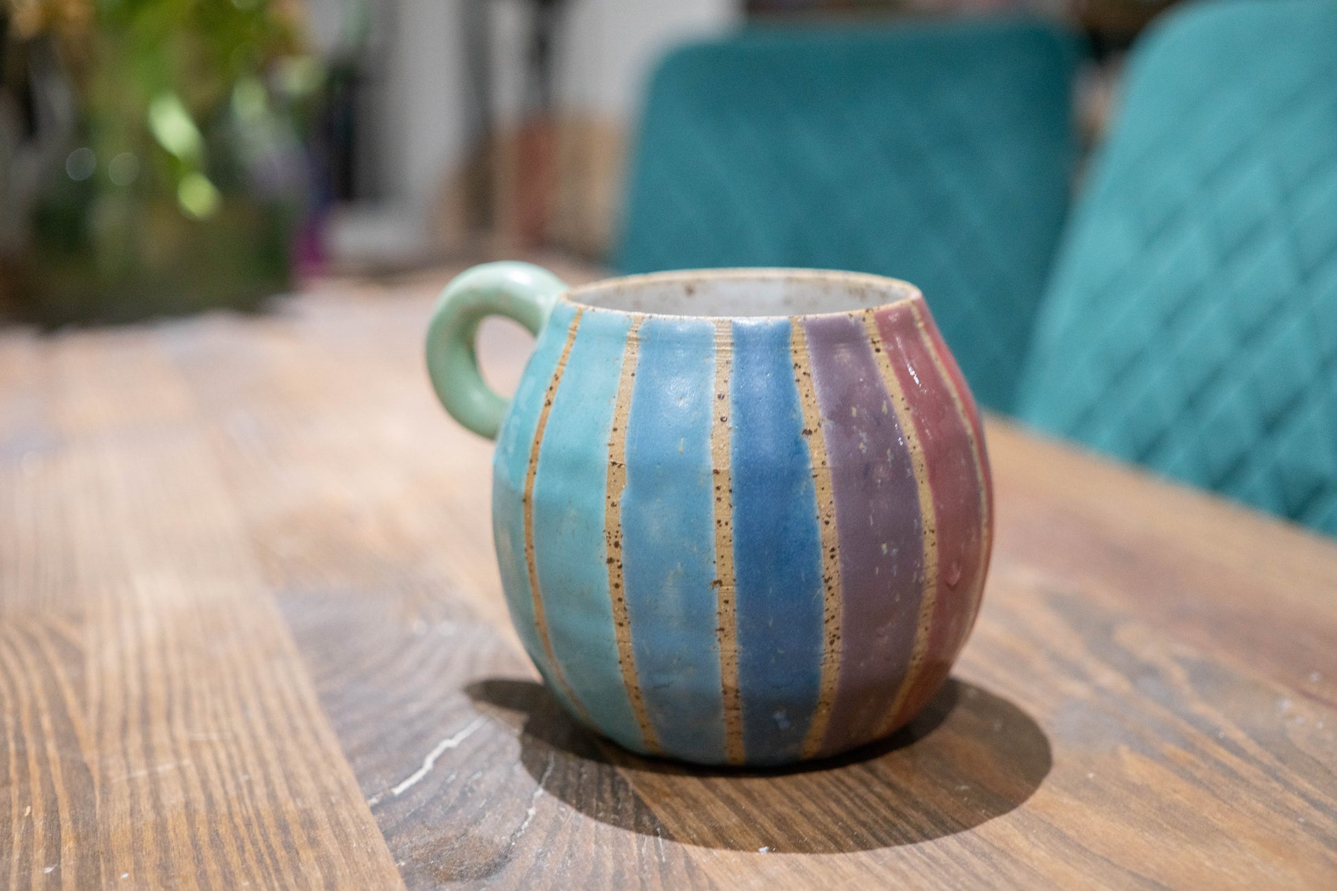 Brighten your mornings with this stunning handmade ceramic mug adorned with vibrant rainbow stripes. Each piece is uniquely crafted, making yours truly one-of-a-kind with its own distinctive colour placement. Celebrate individuality with every sip—these natural variations are what make artisanal pottery special. A conversation starter that brings joy to your daily routine.