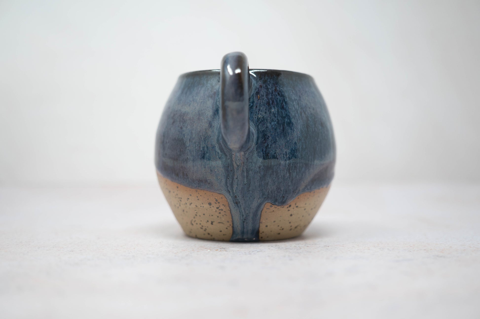 This cozy, hand-thrown mug is designed for comfort and warmth. With a soft, rounded form and an easy-to-hold circular handle, it’s perfect for wrapping your hands around on a slow morning. The purple glazed upper half drapes naturally over the raw, earthy clay base, creating a timeless contrast that celebrates both texture and craft. Holds 12 oz of your favorite coffee, tea, or hot chocolate—your new everyday companion.