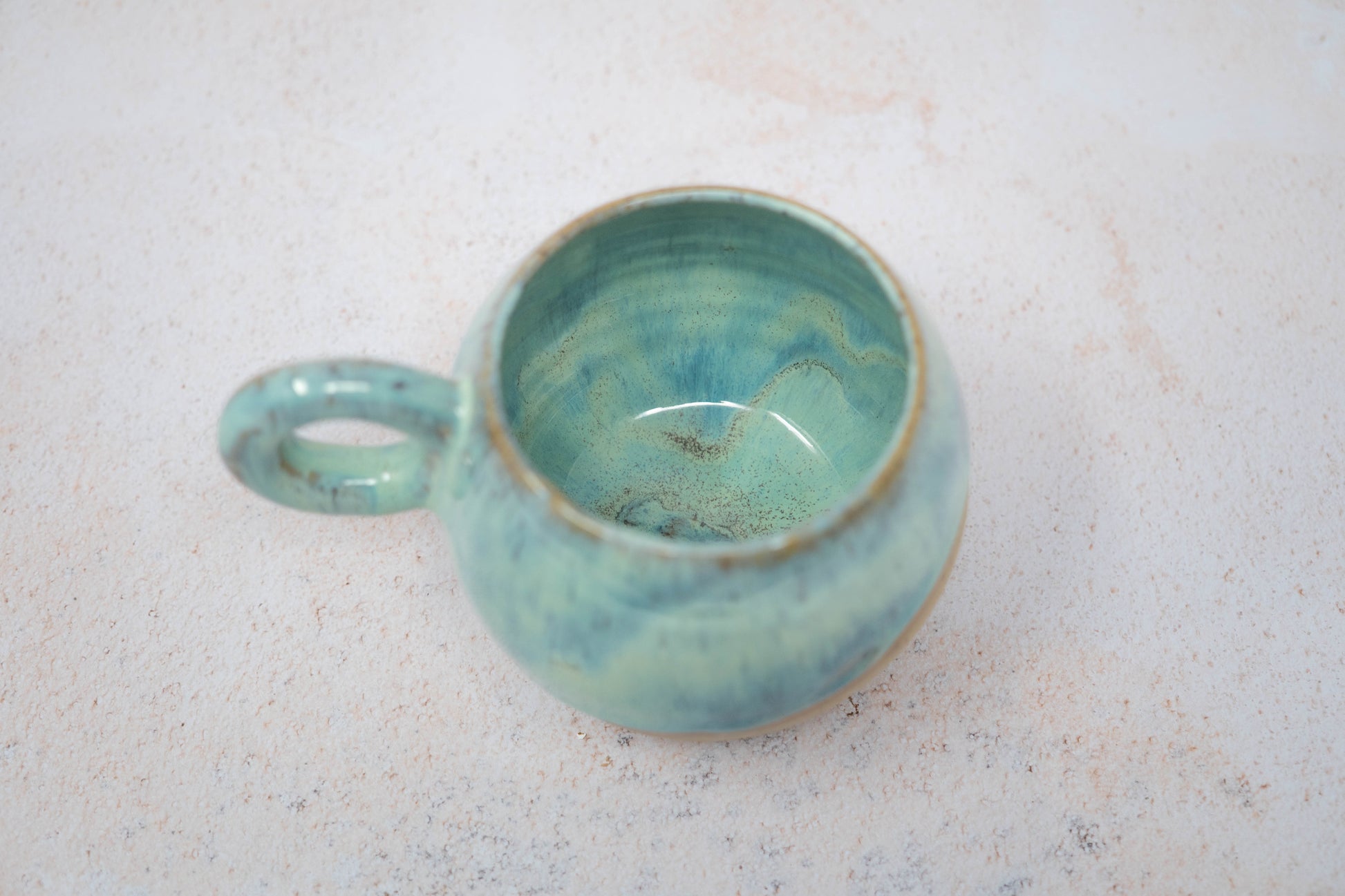 This cozy, hand-thrown mug is designed for comfort and warmth. With a soft, rounded form and an easy-to-hold circular handle, it’s perfect for wrapping your hands around on a slow morning. The purple glazed upper half drapes naturally over the raw, earthy clay base, creating a timeless contrast that celebrates both texture and craft. Holds 12 oz of your favorite coffee, tea, or hot chocolate—your new everyday companion. Please note every item is handmade so there might be small individual differences from item to item.